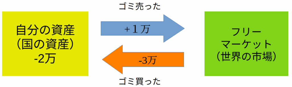 上の図だと1万でゴミを売って、3万でゴミを買うと‐2万の赤字になる。