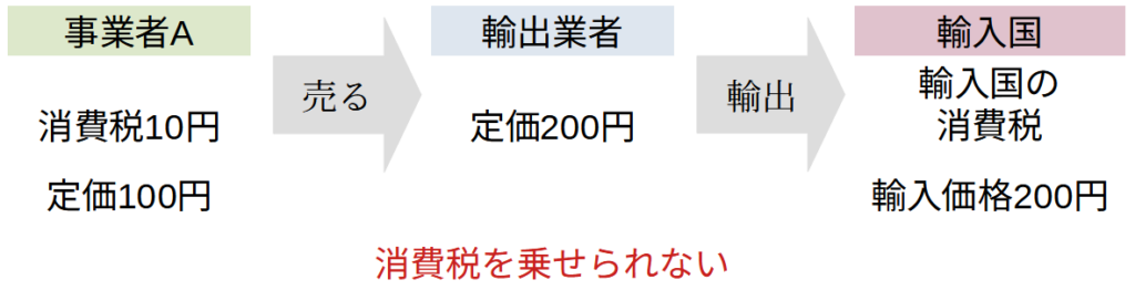 輸出するときに消費税をかけると、輸入時に消費税が乗り、輸入した国は輸入品に消費税をかけることで、消費税の二重課税になる。