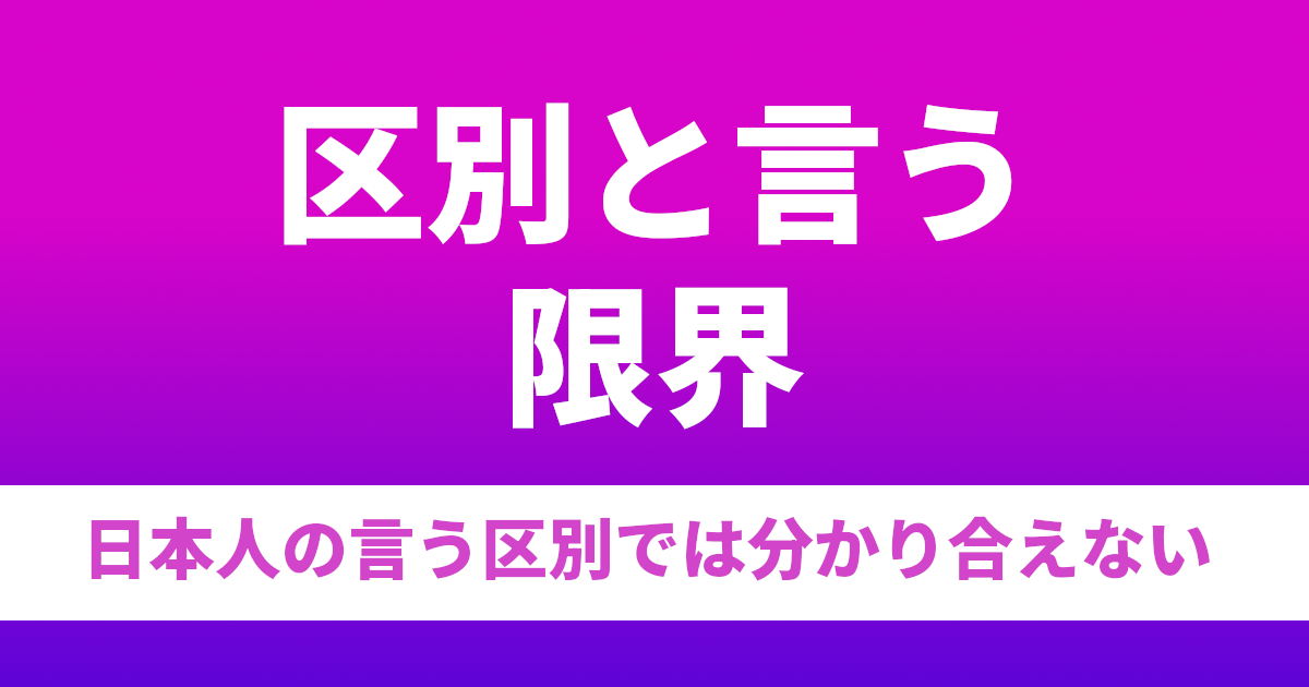 でも、なんかわかった気がするというか、確かに区別とも言えるんじゃないか?ってなんか俺ってブレブレなのか、よくわからなくなってきたけど、日本人の言う区別とはおそらくこういうことだ。